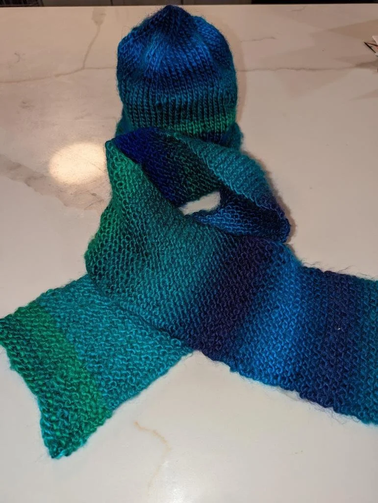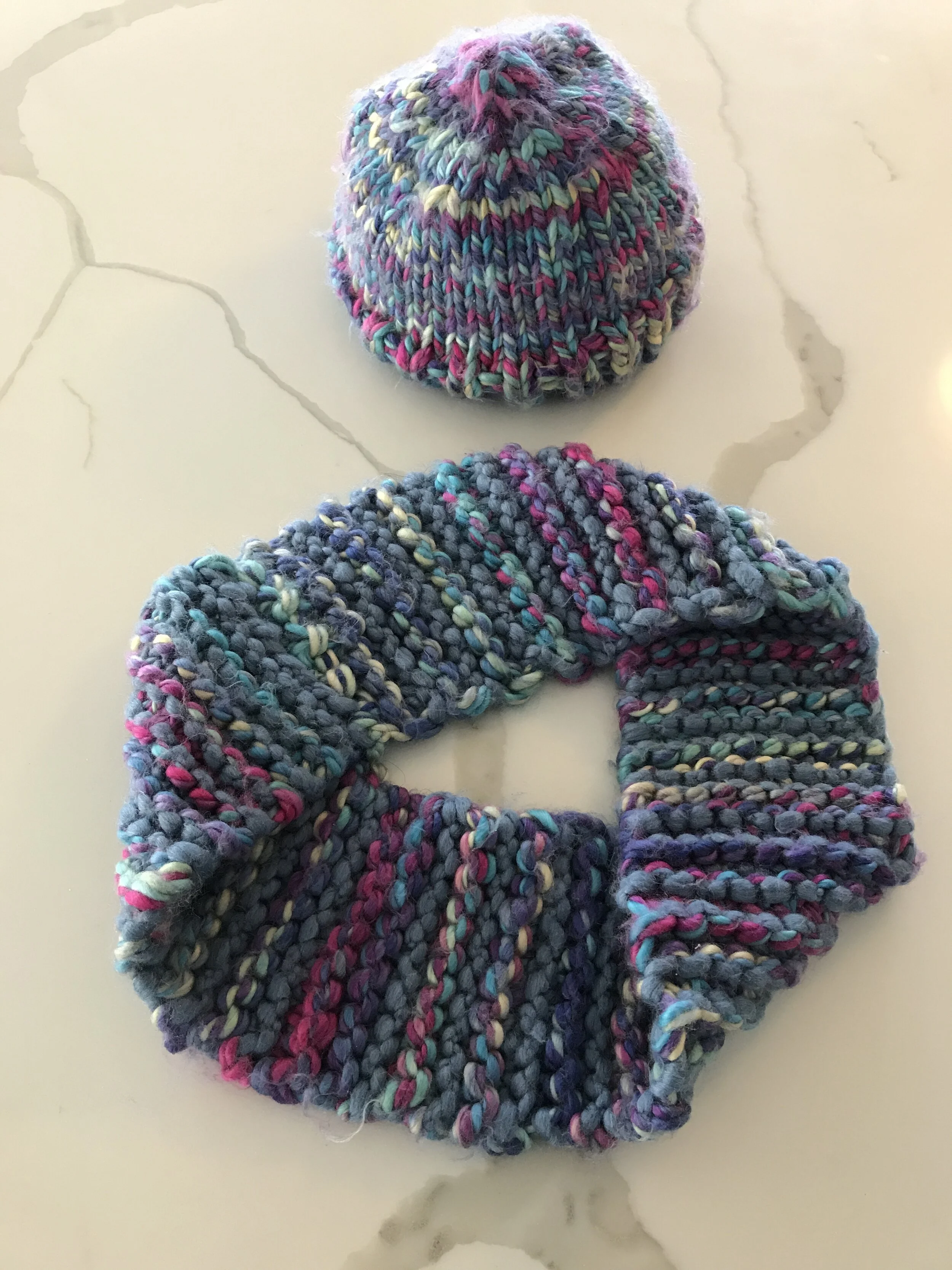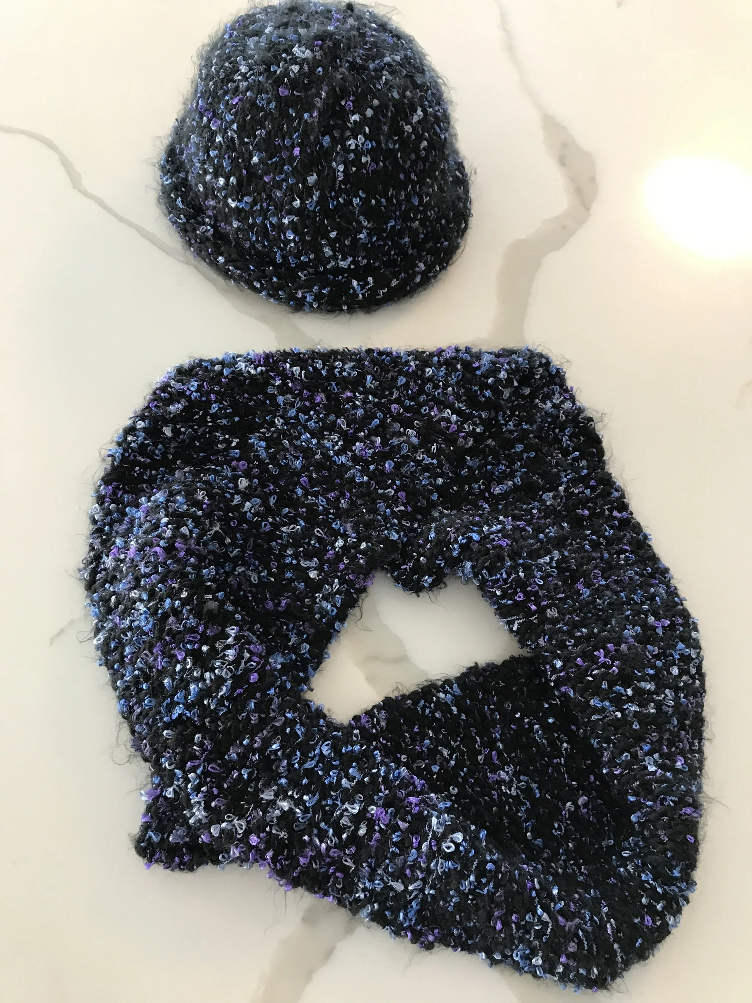 Circle Scarf and Hat knit from Issac Mizrahi Twilight Yarn
